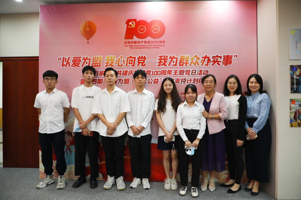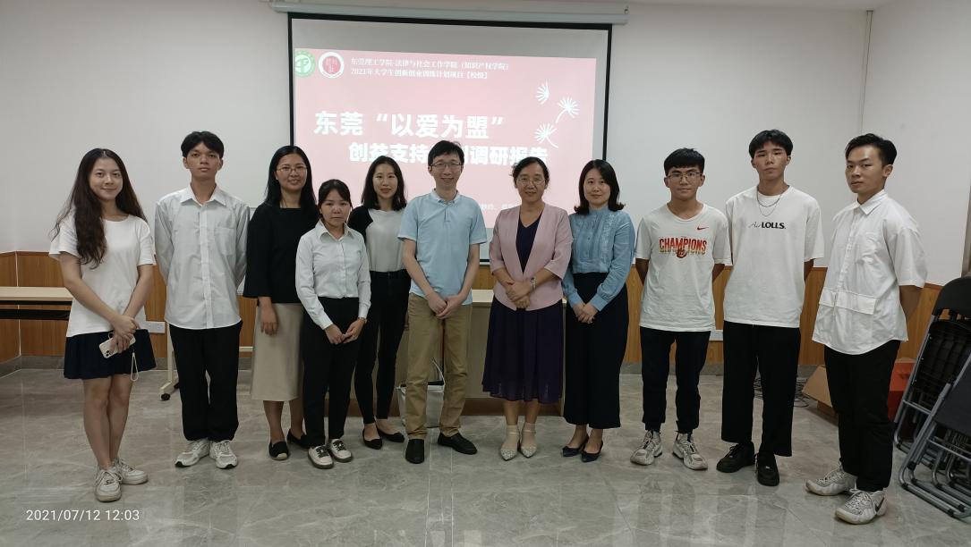 实践育人体系,推进学院“三全育人”综合改革试点工作,7月12日学院副院长朱晓红、党曦博士、张子庄老师和6名大创项目学生团队在东莞市莞香花青少年服务中心参加了由东莞市民政局、东莞南城街道“两新”组织党委指导,东莞市社会工作协会、东莞市微笑爱心慈善基金会及盟大集团联合主办的“以爱为盟 我心向党——我为群众办实事”主题党日活动暨第四期“以爱为盟·微笑公益”创益支持计划终评活动。