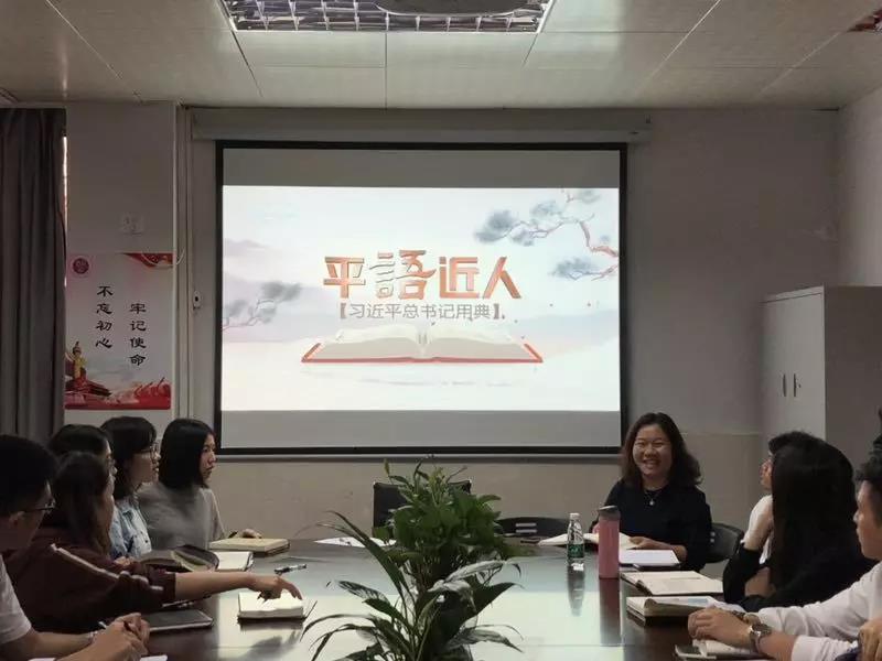 党总支学生支部在党员活动室6403召开主题党日活动,活动主题是“学习《平‘语’近人—习近平总书记用典》”,此次活动由支部书记钟丽华老师主持,支部党员及部分入党积极分子参会。