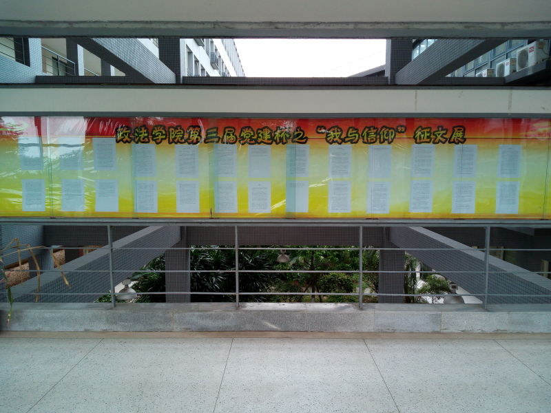 4月21号,政法学院学生党建办分别于松山湖校区经管楼和莞城校区一号教学楼对“党建杯——我与信仰征文比赛”优秀作品进行展示,观文气氛热烈,展示活动获得了圆满成功。
