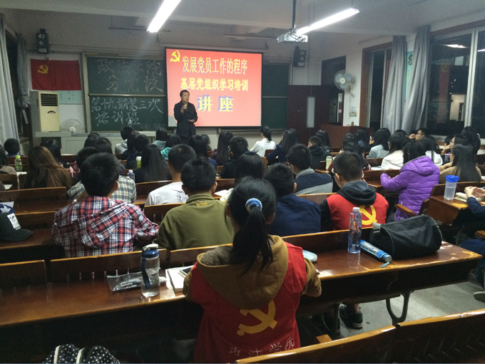 本次培训课围绕 “基层党组织学习培训”展开。首先,刘海波老师以框架的模式为同学们展示了发展党员的基本程序,介绍了入党需要经过的流程。然后刘海波老师以幽默而又不失严肃的语言介绍了发展党员的四大重要意义,以及成为党员的三个原则,并且结合自身例子,生动诙谐地讲述成为一名优秀党员的注意事项。紧接着,刘老师针对同学们的思想汇报提出了自己的意见和要求。最后,刘老师深入浅出地向同学们解释了党员的质量远重于数量的问题,希望所有积极分子们能够自觉用党员标准去约束、规范自己的言行,主动承担社会责任,起到先锋模范作用。
