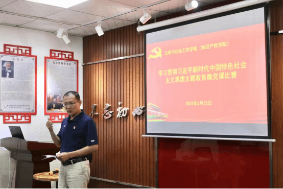 为进一步推动主题教育走深走实,激发广大党员学习热潮,5月25日,法律与社会工作学院(知识产权学院)举办了学习贯彻习近平新时代中国特色社会主义思想主题教育微党课比赛,学院党委书记杜应发和学生党支部书记、学生党员代表等参加了活动。