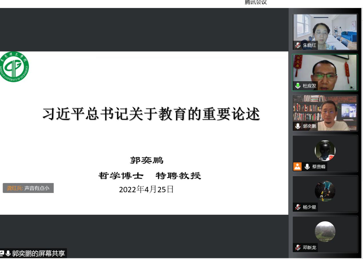 4月25日晚,法律与社会工作学院(知识产权学院)党委邀请马克思主义学院党委副书记、特聘教授郭奕鹏为学院全体教师作“习近平总书记关于教育的重要论述”的专题讲座。会议由学院党委书记杜应发主持,禁漫