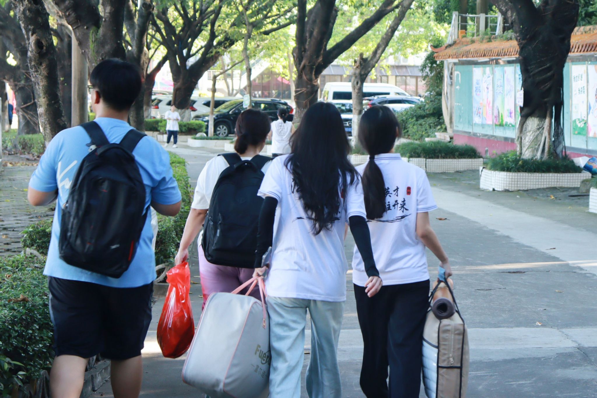 的志愿者们早已在校门口等候,为新同学们提供指引、搬运行李等服务。