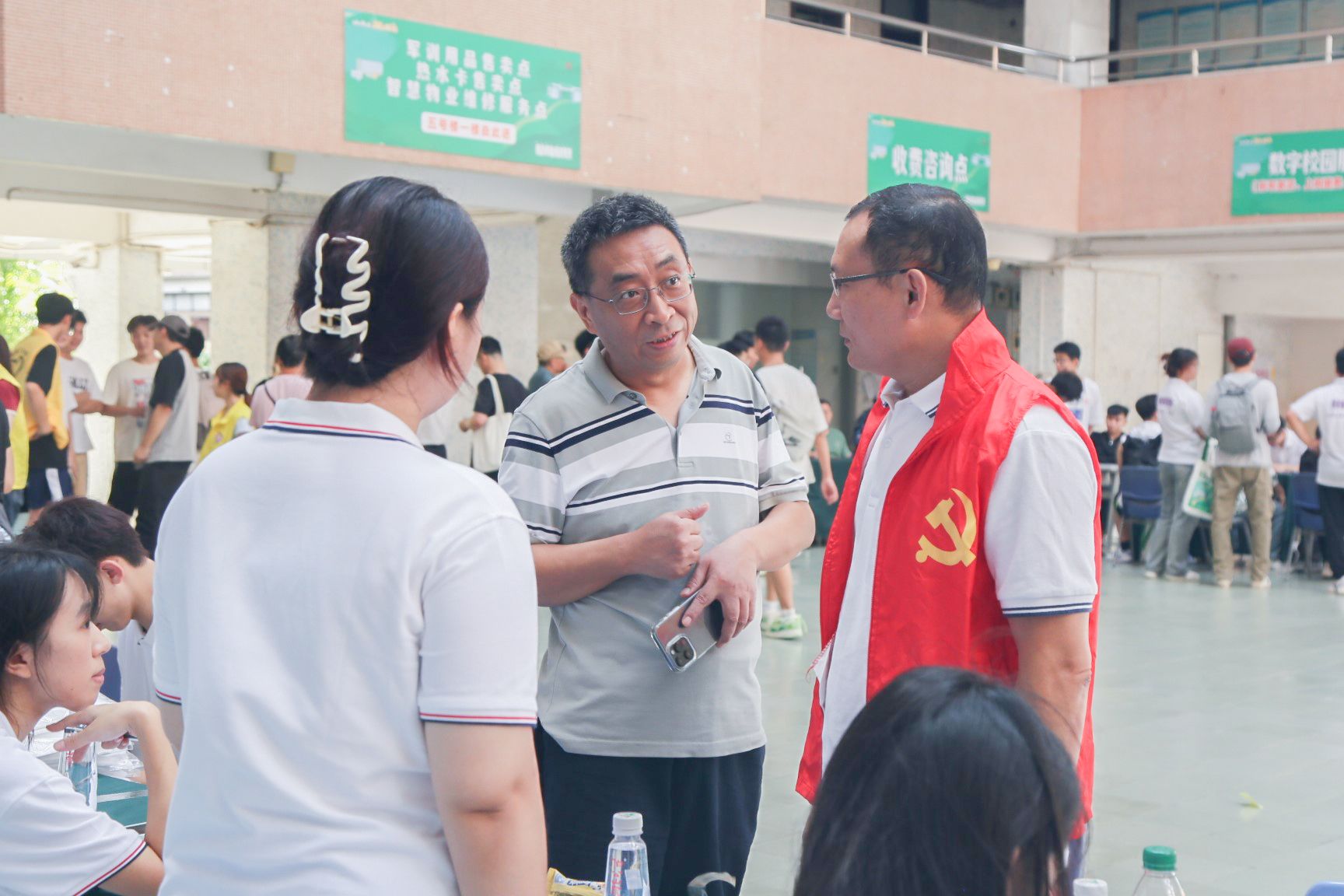 报到点,详细地询问了新生报到情况,以及新生入学教育工作安排,同时对学院迎新工作表示肯定。