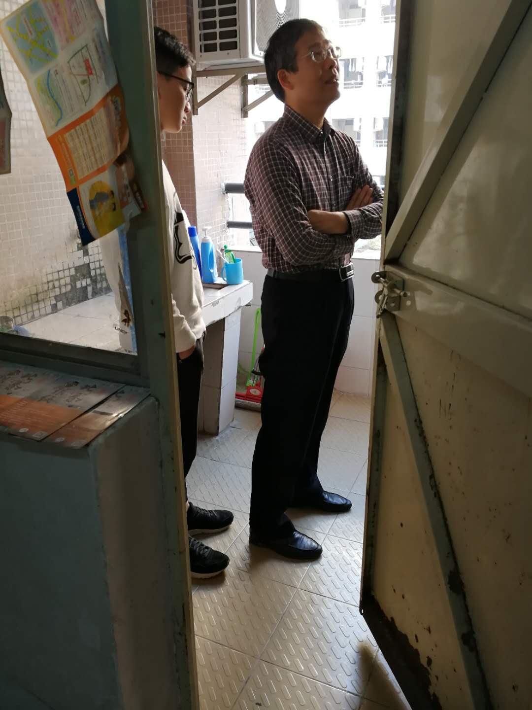 书记潘荣新在辅导员邱可荣老师,邹欢老师的陪同下,随机走访了寒假留宿同学的宿舍,了解留宿同学的学习、生活情况。