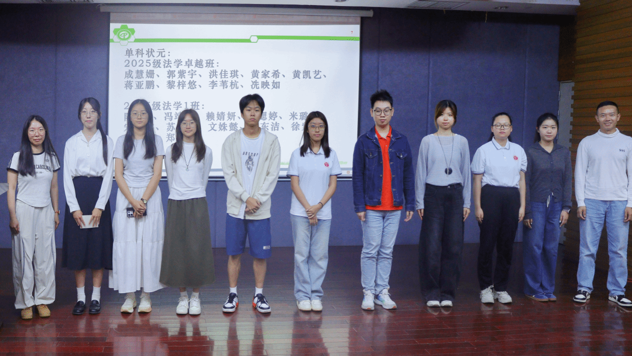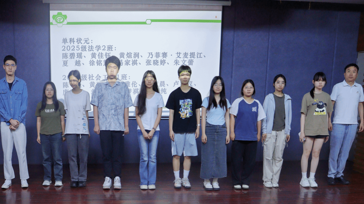 专业辅导员、班主任、助理班主任与2025级第一学期考试单科状元合影。