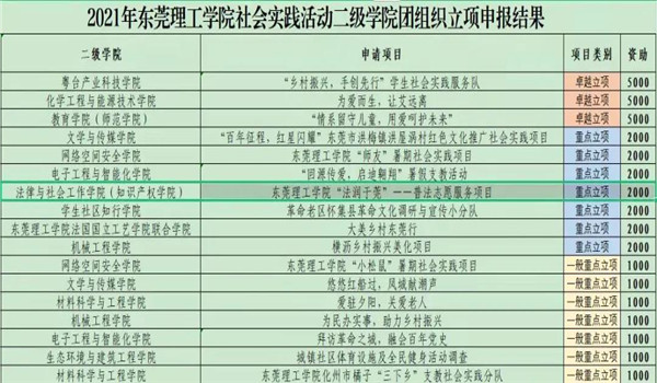 大学生普法志愿项目“法润于莞——普法志愿服务活动”获得立项扶持。