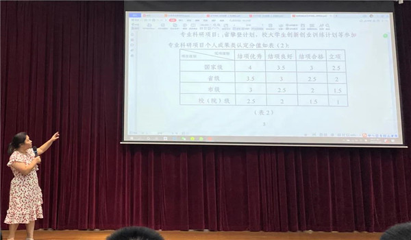 紧接着,辅导员钟丽华为同学们讲解德育分。她对德育分的构成、作用等方面作出具体解释,强调学分制度的重要性,要求同学们高度重视学分积累。此外,钟丽华老师希望同学们规范自己的行为,不擅自离开校园。