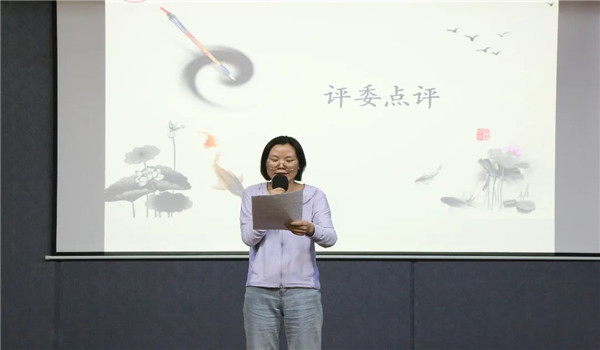 比赛最后,评委们对每个作品进行点评。谢媚媚老师充分肯定每一位选手所付出的努力,赞扬选手们的精彩表现。谢媚媚老师表示比赛只是一种方式,最重要的是通过本次比赛唤醒同学们对中华经典文化作品的感知力,从中汲取精神力量,并身体力行地将这种优秀文化传承推广。
