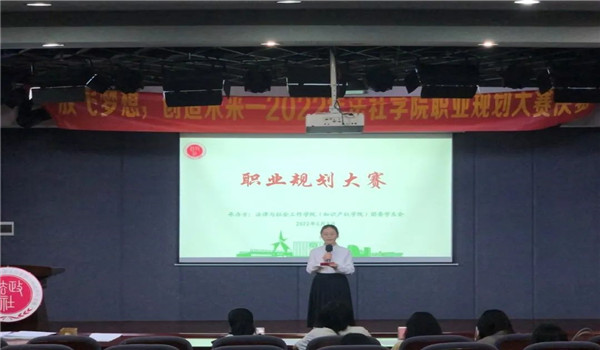 于2022年6月9日晚7:30于莞城校区小剧场举行大学生职业生涯规划大赛,法社团委、学生会团委常务副书记李嘉怡、法社团委、学生会学生会主席陈丹妮、2021年禁漫