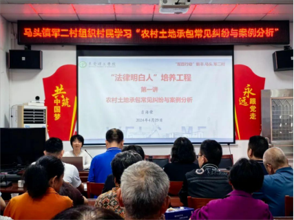 法律系副主任吉海荣老师赴新丰县马头镇开展“法律明白人”培训讲座活动。吉海荣老师围绕农村土地承包问题,结合《中华人民共和国农村土地承包法》《中华人民共和国土地管理法》《农村土地承包合同管理办法》等法律法规,针对农村土地承包常发纠纷类型,开展以案释法,让在场的“法律明白人”从案件的解析和处理中学到法律知识,了解土地承包纠纷解决方法与途径。讲座后现场村镇干部和村民就自身所遇到的土地承包问题纷纷提问,吉海荣老师和校法律顾问龙凤兰老师为大家答疑解惑。