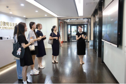 7月8日上午,法律社会工作学院(知识产权学院)法律系主任罗兆婧以及法律系学生一行到北京市盈科(东莞)律师事务所参观交流,并探讨组队参加2024年“领军杯”涉外模拟法庭全英辩论赛一事。盈科东莞涉外商事纠纷解决法律事务部主任杨洁、卢海航律师、蔡旭川律师、实习生王语轩参与本次会议。