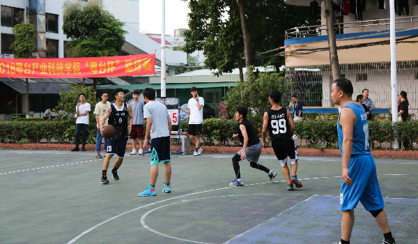师生篮球交流赛在莞城校区一饭前篮球场准时开赛。