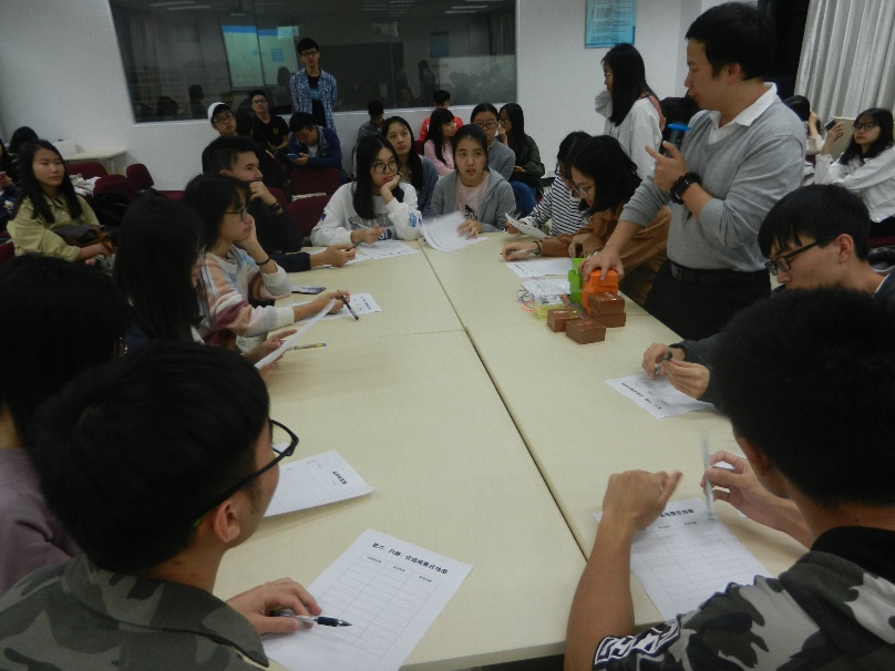 11月26日下午四点半,在图书馆十三楼的社工实验室,社工周小明向我们分享了小组工作实务经验。