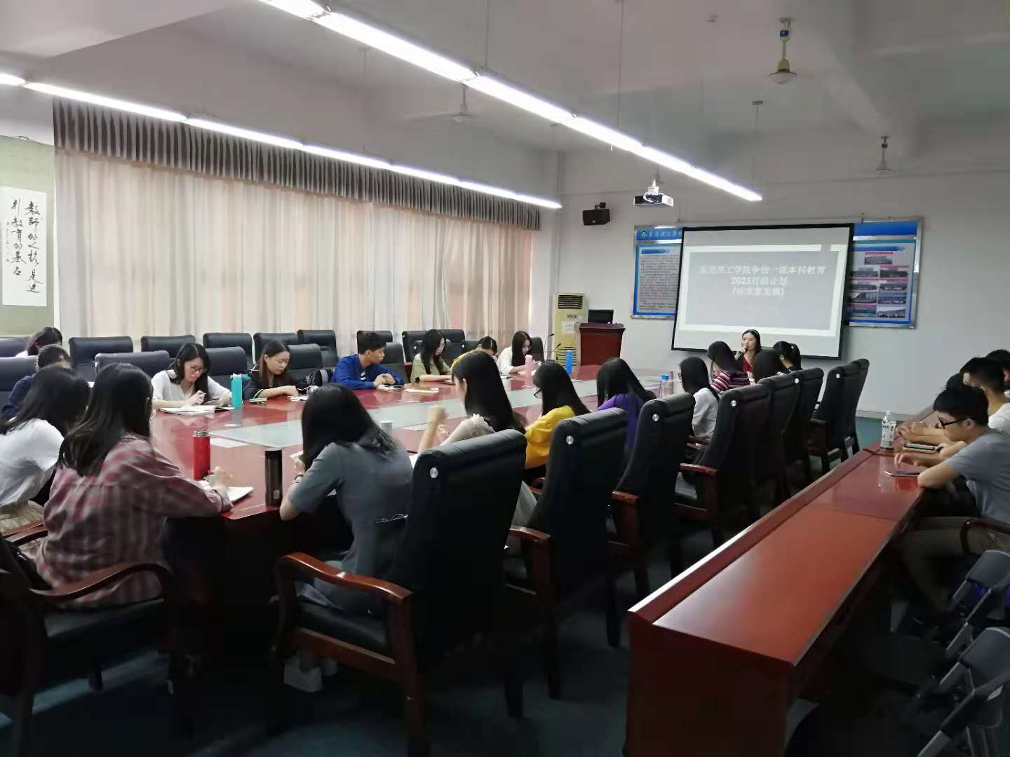 争创一流本科教育2025行动计划》(征求意见稿)进行了宣讲,主要围绕深化专业内涵建设、加强课程建设、提升教师教学能力、加强创新创业教育、做实质量文化等主题组织全体教职工展开了探讨。