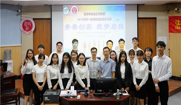 2018年第一届创新创业设计大赛在莞城校区模拟法庭(6#2)展开。本次大赛的到场嘉宾有公共管理系主任杨少星老师、专职组织员陈少典老师,周栋梁同学与杨君怡同学担任本场比赛的评委。江铃同学担任本次大赛的主持人。