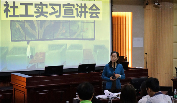 本次宣讲会旨在促进2015级社工专业学生的实习工作更好的开展,让同学们与实习单位有近距离的互动,进一步明确实习的目的和了解实习工作的内容。期待同学们能够在实习中进一步提升专业认同感和专业能力,完善自身素质,为走上职场做好充分的准备。