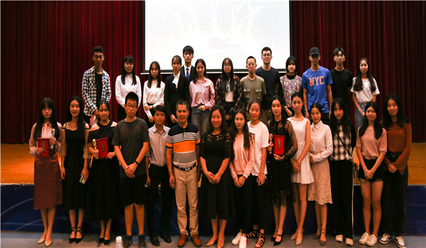 的学生的全面发展,是学院贯彻“三好学生”之中“好口才”人才培养的重要措施,呼吁同学们积极参加活动。最后嘉宾与评委进行现场评分,宣布了本次主持人大赛的一等奖、二等奖、三等奖得主分别是苏芷欣,王祥宇、林婷莉。丘永辉老师,钟丽华老师,邹欢老师分别上台为他们颁奖。