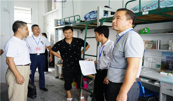 强昌文院长,潘荣新书记,夏能礼副院长,丘永辉副书记在辅导员老师及助班的陪同下到学生宿舍进行了走访,看望新生。老师们代表学院对新同学的到来表示热烈的欢迎,并热切地询问新生是否适应新学校的生活,关心新生们的状况,希望新生们尽快适应大学生活,融入新环境,热情的话语与亲切的问候令新生感受到了家的温暖与关爱。