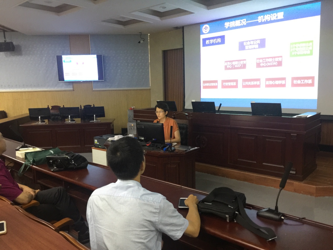 讲座首先是由邵任薇老师为大家先简要介绍广东外语外贸大学社会与公共管理学院的基本概况,包括机构设置、师资队伍等信息,接着邵老师为同学们详细的介绍了贵学院社会管理专业、社会工作硕士、应用心理硕士三个专业的招生信息、培养特色、招生方向与计划等内容,鼓励同学们积极考取。