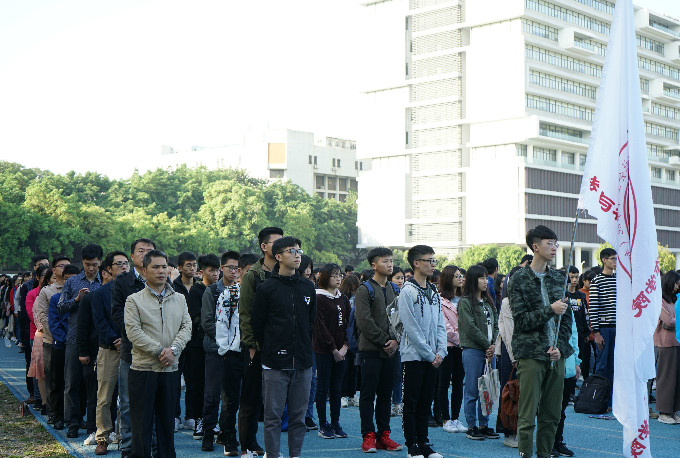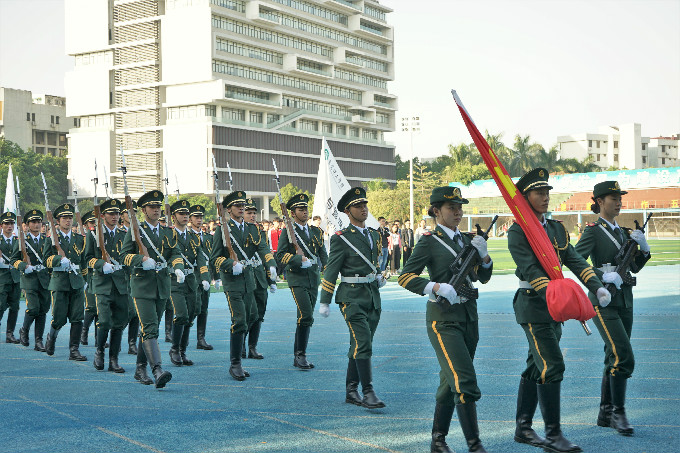 莞城校区迎来了新学期第二次升旗仪式。参加此次升旗仪式的人员有学工部副部长、武装部部长卫红权、莞城校区学工办老师、各二级学院党总支副书记、辅导员、学生党员以及2017级全体学生。