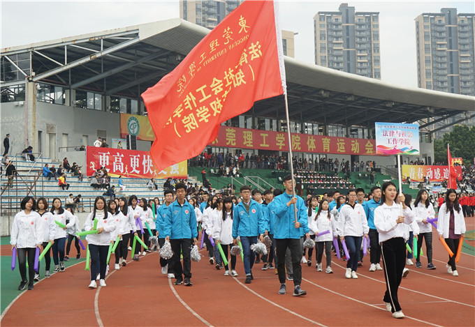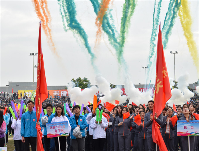 28日上午,随着激昂的音乐响起,整齐有序的方阵踏着铿锵有力的步伐依次入场。方阵就位后,由学校领导致辞开幕。在奏唱国歌和校歌的歌声之后,成洪波书记宣布校运会正式开始。