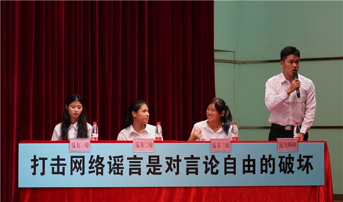 第一场辩论赛双方就“打击网络谣言是对言论自由的维护还是破坏”展开辩论,第二场辩论赛双方就“性教育应不应该以校园教育为主”展开辩论。首先,双方一辩用具有高度概括性的陈述为本场辩论开篇陈辞,推动比赛顺利进入正题。在攻辩环节,双方二辩用缜密的逻辑推理和灵活的思维对对手进行攻辩,现场气氛迅速升温。在最精彩的自由辩论环节,双方引经据典,出口成章,将比赛推向高潮。在最后的总结陈词环节,双方四辩对自己的观点进行了总结。赛后,观众们就辩论中存在的问题提出了自己的疑问,辩手们也给出了相对满意的答案。经过评委严格的打分,第十四届辩论赛殿军为法学二班,季军为法学一班,亚军为法学卓越班,冠军为行政管理一班,并宣布最佳辩手和最佳风采奖。
