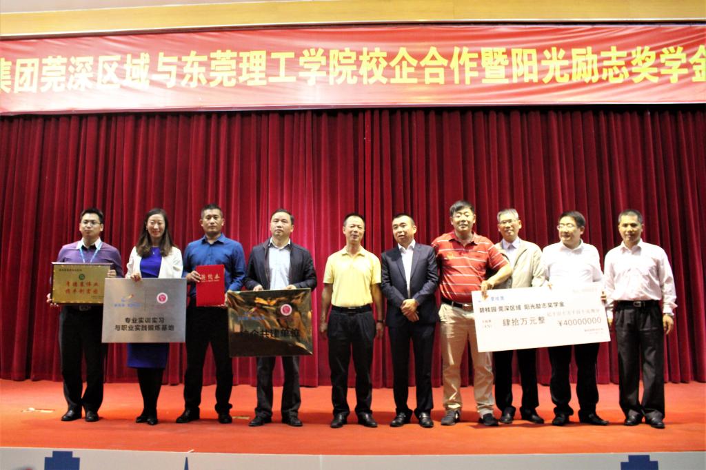 校企共建暨设立奖学金仪式”。碧桂园集团莞深区域常务副总裁张剑、物业公司总经理代涛、总裁助理王丽莎等企方代表出席仪式,学校副校长李忠红、发展联络办主任崔学海、禁漫