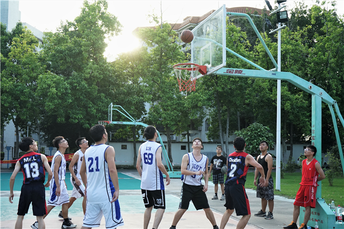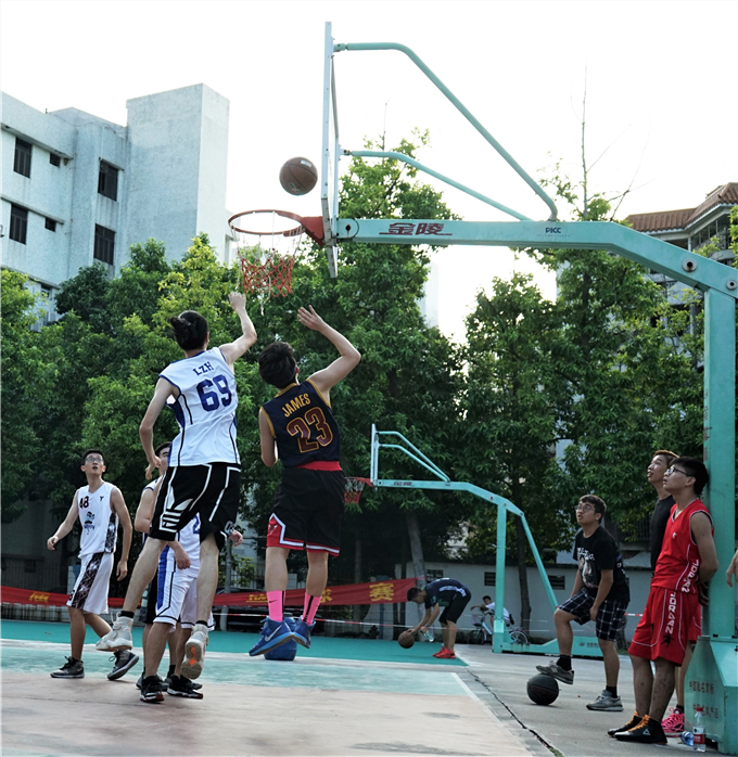专业间的对打篮球赛在图书馆前的篮球场上举行,参加本次篮球赛的队伍分别是14级的法学专业和行管专业。