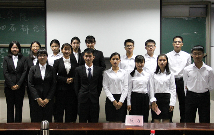 第十四届辩论赛在课室3407成功举行,此次辩论赛在法学卓越班与法学一班、行政管理一班与法学二班之间展开,该辩论赛特邀政法辩论队队员担任评委。