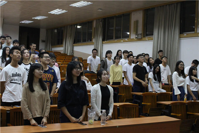 首先,是由各部门部长说话。部长们轮番上台,各自对部门的近期工作总结以及对部员和学生会的展望。紧接着是部门展示由他们一周的准备时间的表演节目,舞台上的小干事们尽心演出,力图为大家带来欢笑。各种令人捧腹大笑的表演实在是过目难忘,大家各出奇招表现自己,实在是很棒!随后,是我们陈慧聪主席说话,主席带给我们学生会的寄望和工作经验,深入我们心窝。最后我们合唱会歌《我相信》,激昂的歌声与铿锵有力的歌词的碰撞,实在是气势辉宏。