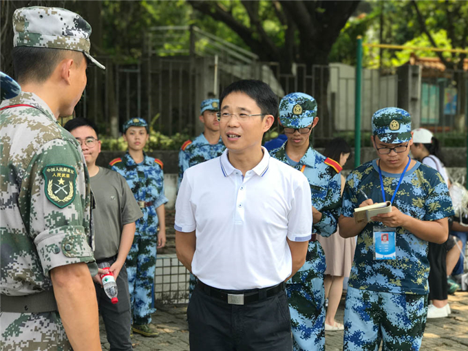 9月12日上午,新生军训的第六天。热气逼人,但丝毫没有影响到同学们的士气。的禁漫 第九营这两天的良好表现,被授予一面流动红旗。我校党委书记成洪波也来到训练场看望各位新生。