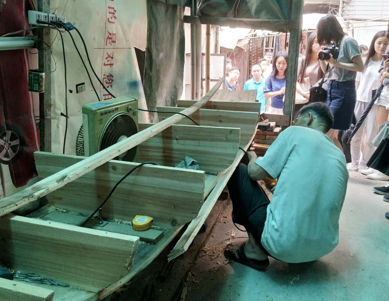 在虎门疍家文化项目中,东莞市政协委员、虎门镇社会工作协会会长李梦伟带领同学们走访了社区,向同学们介绍了社区匠人手工船模创作人,使同学们了解到传统的船模制作过程。同学们还在社区民间音乐室欣赏到了疍家文化中颇具代表性的咸水歌,感受到了东莞疍家文化的独特韵味。新湾社区党工委副书记邓建新带领同学们参观新落成的疍家文化展览馆,追寻水上人家,并对保育疍家文化项目进行了介绍。通过走访与参观,同学们了解到了疍家文化保育项目的的项目背景,该项目以保育、传承文化为手段来凝聚社区居民,达到带动当地社会、经济、文化的进一步发展的目的;同学们还认识到该项目中社会工作者如何挖掘社区资本、推动社区参与、提升社区效能,进而做好社区营造的过程。