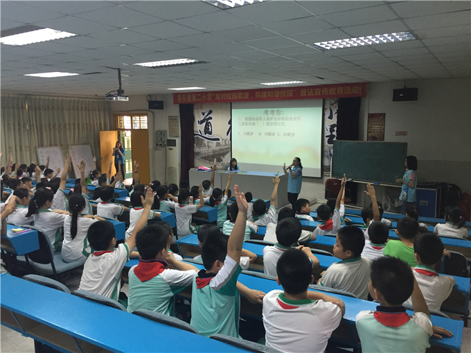 团总支法律宣传志愿服务队于5月10日下午,携手桥头镇社工,来到桥头镇桥头第二小学开展校园欺凌普法宣传活动。