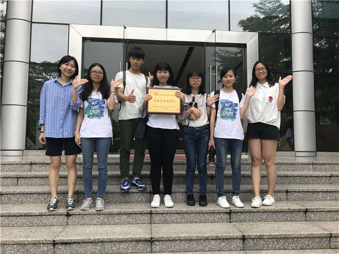 团总支志愿服务站荣获先进志愿站称号,党委宣传部部长何献青老师为其颁奖并合照留念。