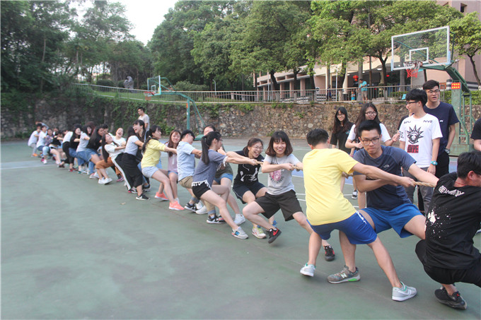 在大礼堂前的篮球场举行拔河比赛。本次大赛以促进各年级、班级间交流为宗旨,丰富学生们的校园生活为目的,以比赛的形式为学生们带给展现群众风采的舞台,透过拔河比赛发扬团队精神,增强凝聚力。全体同学纷纷以极大的热情参与到此次活动中。