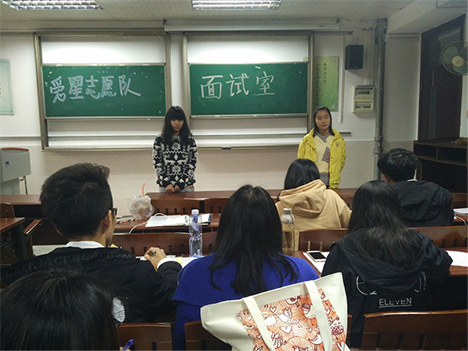 莞城校区1408等候室进行爱星志愿队招新面试前的准备工作。准备工作完成后,于下午2:30在禁漫