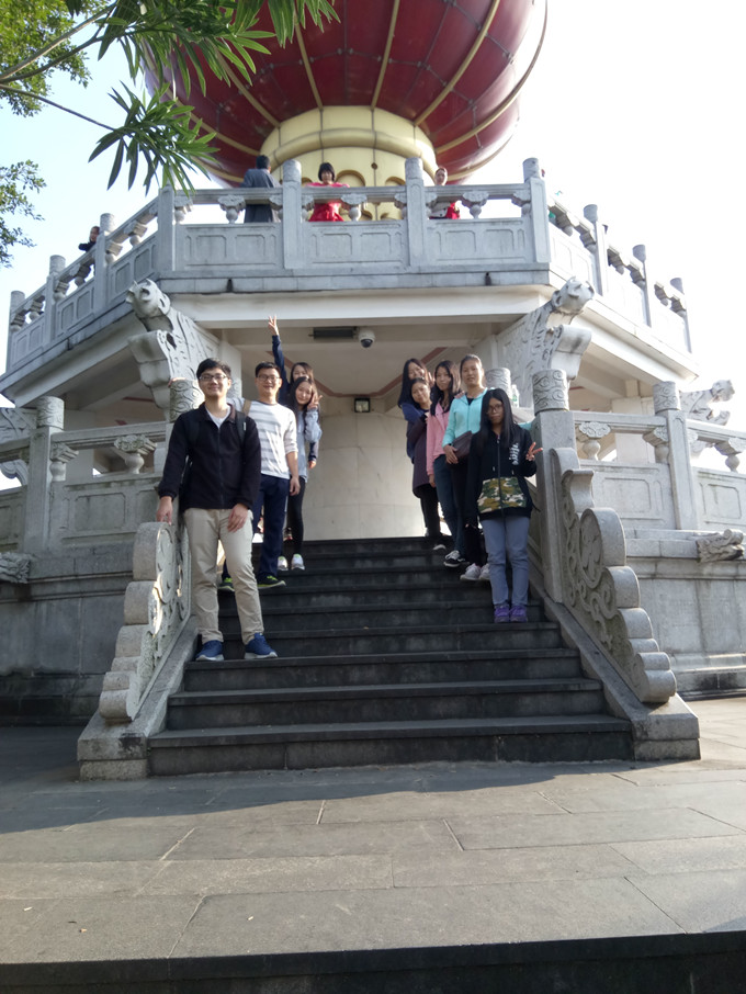 下午两点,成员们到齐后乘公交车出发。两点半到达目的地——旗峰公园。三点半登顶,于山顶逗留半小时,或观光或拍照。四点开始下山,中途由于走岔路导致下山时间延迟,后找到一条下山的路,顺利通行。五点到达山脚后乘车回校。