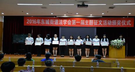 “立足地方、服务社会”办学宗旨,给广大学生搭建提升法治素养和专业实践平台,法律与社会工作学院党总支、公共管理系携手东城街道法学会在2016年6月至11月举办了第一届东城街道法学会主题征文活动。