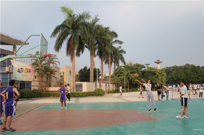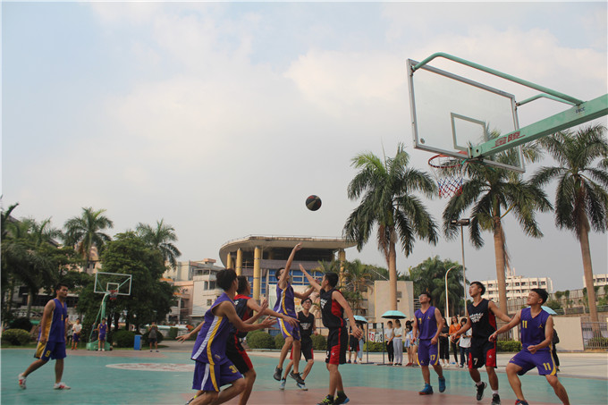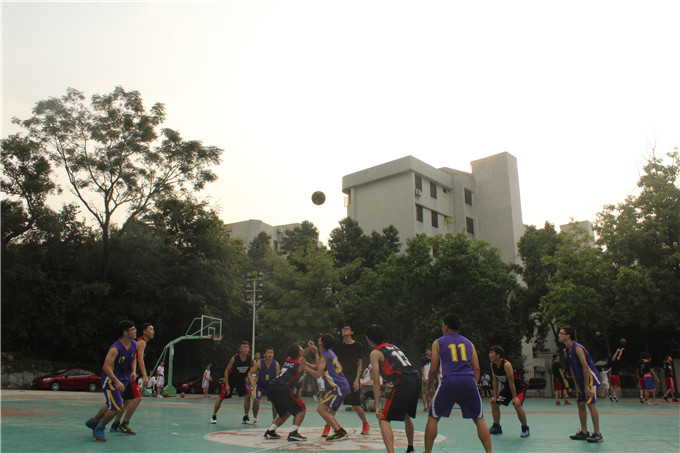 篮球赛第二轮小组赛在图书馆的篮球场举行,14级行管三班和法学一班组成的队伍与14级社工一班和社工二班组成的队伍展开激烈角逐。
