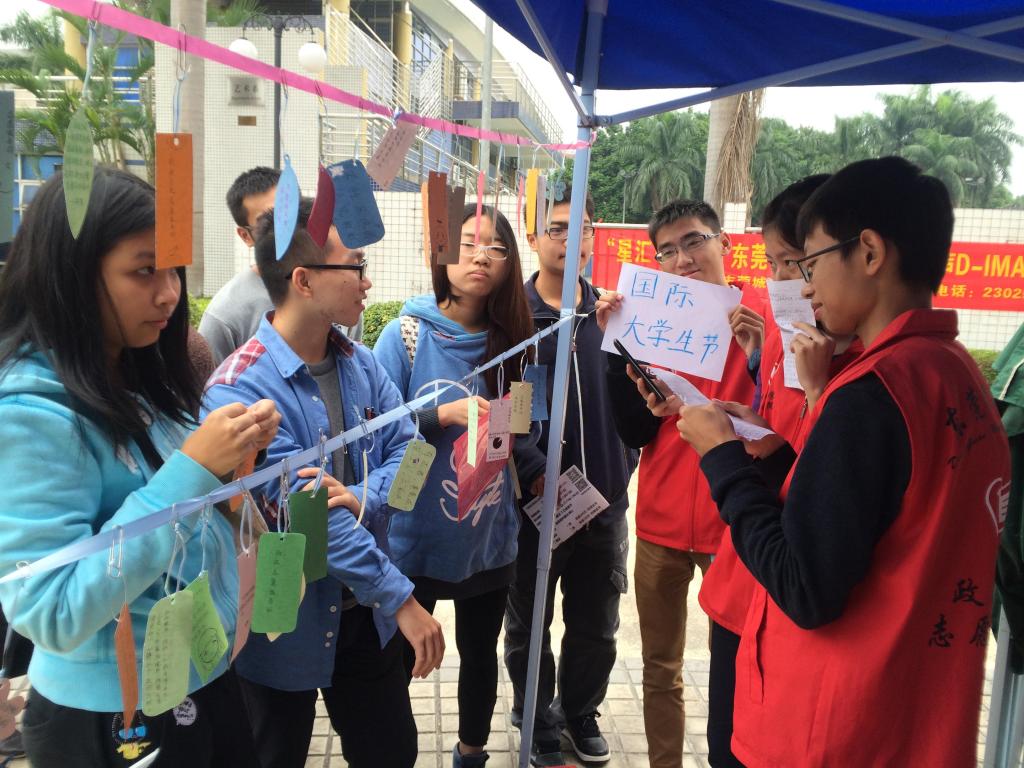 政法学院志愿服务站举行的国际大学生日之“炫彩年华,撞色青春”志愿活动,在莞城校区图书馆前球场空地正式拉开帷幕。在志愿服务站各干事的有序安排以及参与者的积极配合下,本次活动进展顺利,吸引了不少在校大学生参与其中。
