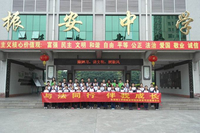 政法学院法律宣传志愿服务队进行了3月份第二次的普法活动。队员们满怀热情地来到长安镇振安中学和实验小学开展法制教育课堂。