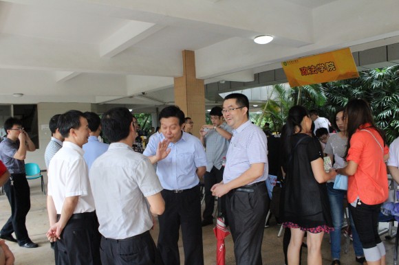 我校领导亲临现场询问迎新情况,指导新生报到,统筹安排、协调现场工作。他还亲切看望了现场的新生骨干和志愿者,了解现场的迎新工作,并且与提前报到的学生亲切交谈,关心学生来校后的生活适应情况和心理状态,同时向远道而来的新生家长表示慰问。随后,他们详细地向同学们了解生活学习环境的改变给同学们带来的一些困惑,并耐心地向同学们解答问答。他勉励新生,面对新的大学学习生活,学生需要有一个前瞻性的思考和规划,学习扎实的理论知识基础和提高过硬的综合素质。不少新生家长表示非常感谢学校领导的关心,政法学院的迎新工作很细致周到,非常认可学校的工作。
