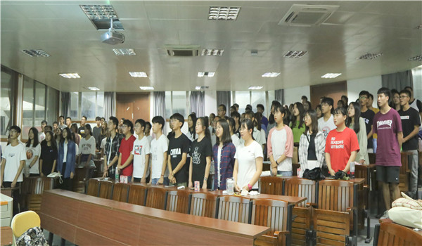 随后方志鑫师兄和袁锡君师兄进行讲话,他们对干事们的表演表示肯定,并表扬了干事们最近的工作且对干事进行了鼓励,同时希望大家在以后的日子里能共同进步。随着会歌“我相信”的音乐响起,全体起立并以饱满的精神合唱完音乐。最后,大会在全体大合照中圆满结束。