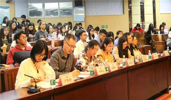 在莞城校区模拟法庭举行宪法宣传微视频暨普法课件大赛决赛。比赛开始前,主持人为我们介绍了出席的嘉宾和评委,他们分别是东莞市司法局东城分局赖凌燕副局长、东城法学会代表卢瑞清、东城司法分局严雯诗女士、副院长朱晓红、法律系副主任吉海荣、邓新龙老师和胡庆乐老师。