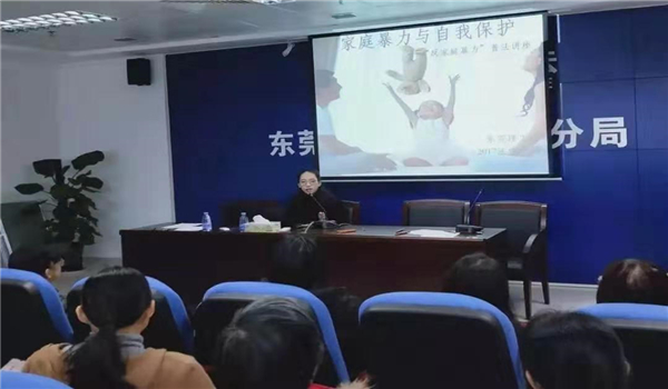 12月7日上午十点,迎着冬日里久违的暖阳,2017级法学卓越班的邓心乐同学代表东莞理工法律与社会工作学院(知识产权学院)来到东莞司法局东城分局进行“家庭暴力与自我保护”普法宣传活动。