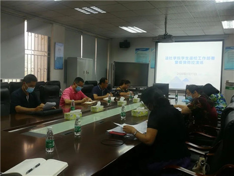 会议包括了返校工作部署和模拟学生在教室考试突发异常情况的处理。会议开始,由学工办主任钟丽华解读学院学生返校工作方案,从返校学生需要准备的工作、返校前学院的准备工作、返校期间的工作安排、学生到校后的各项防控工作和学生离校工作等方面进行详细的介绍。学院党委副书记丘永辉向在座的教职工传达了学校关于学生返校疫情防控工作的相关要求,一是要求各位老师熟悉疫情防控响应流程,二是要做好学生返校后的温暖关怀工作。