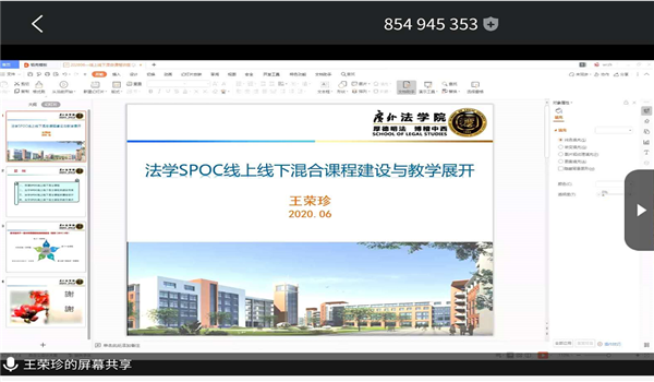 利用腾讯会议平台特邀广东外语外贸大学法学院王荣珍教授为全院师生开展一次题为“法学SPOC线上线下混合课程建设与教学展开”的主题讲座。院长郑玉敏、副院长朱晓红、沈亚萍以及各系主任、专任教师以及部分学生代表参加了此次活动。
