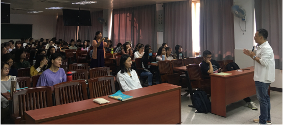 付俊老师在东莞全媒体禁漫先后任职《体育·莞》栏目制片人,是《今日莞事》微信公众号负责人、两微(微信、微博)负责人、视频融合产品“莞视频”创始人以及负责人、全媒体禁漫媒体融合运营组组长,一直奋斗在媒体融合的第一线,善于各类短视频创新制作等等,其作品多次获得省市新闻奖。付俊老师给我们分享的是“互联网运营的那点事”,他强调新媒体是一种符合平台规则的表达方式,强调互联网思维中“用户思维”以及在当下我们需要具备的逻辑思维能力、文案撰写能力、创意能力,鼓励感兴趣的同学学习新媒体运营,并给予我们胜利锦囊“你的标签永远比你的内容更重要”。