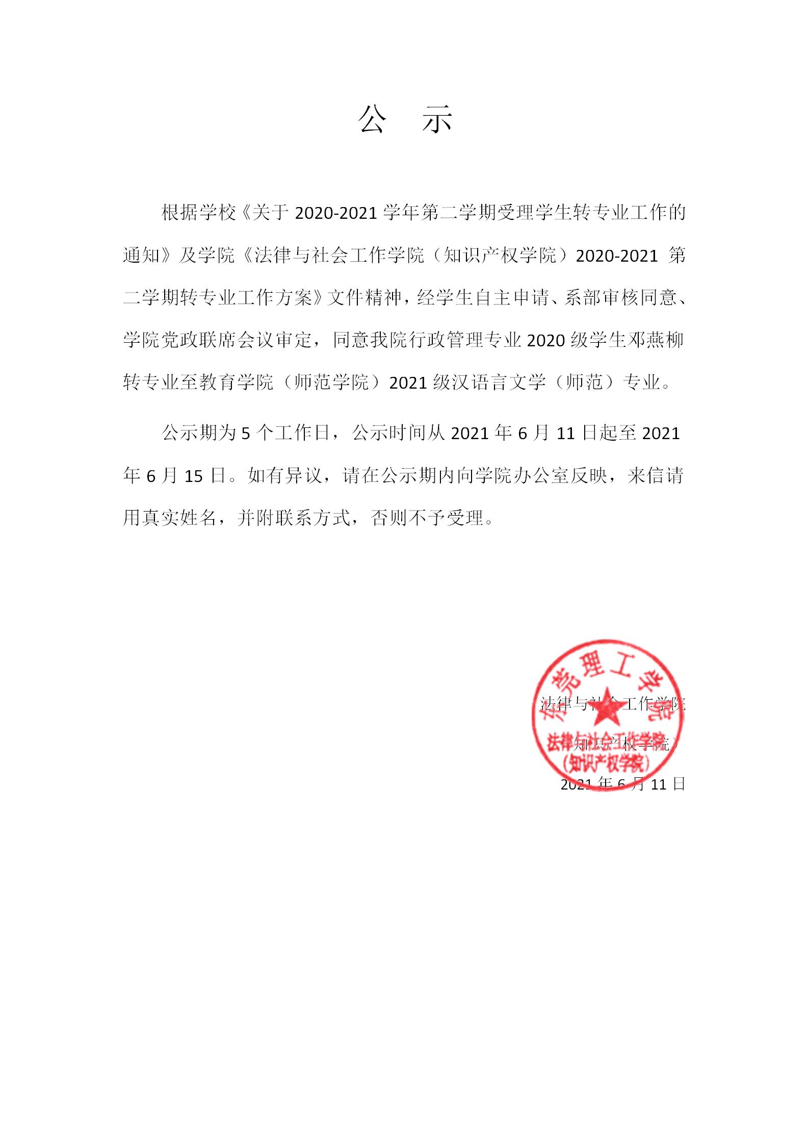 关于学生转专业的公示